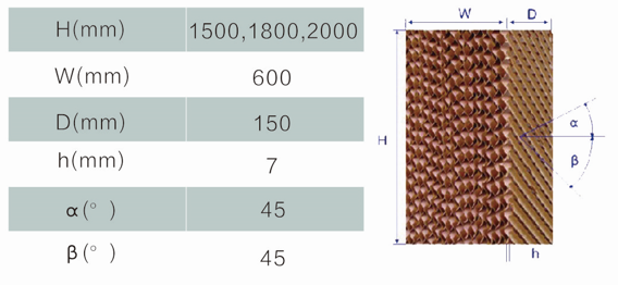 水流均勻、風阻小、能承受較高的過簾風速,具有耐腐蝕,不易滋生苔菌,使用壽命長等特點,與風機組合能達到良好的通風降溫效果。